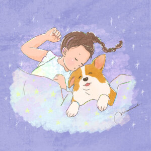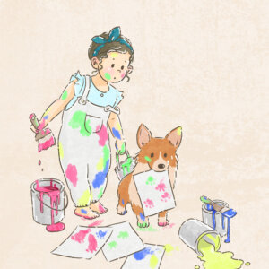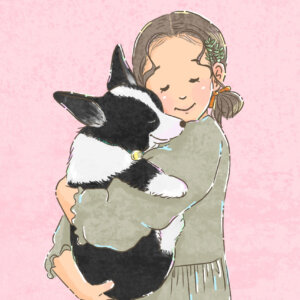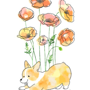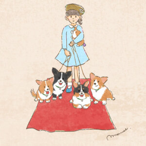 コーギーと子どもシリーズのイラストは、ポストカードサイズ、またはA4サイズ(210mm×297mm)で販売致しております。