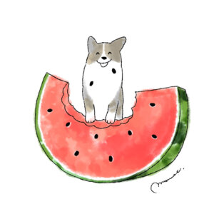 スイカとコーギー