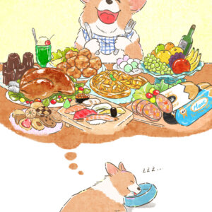 夢見るコーギー(食いしん坊やの美味しい夢編)