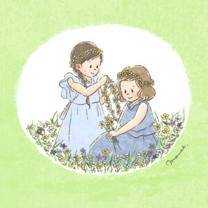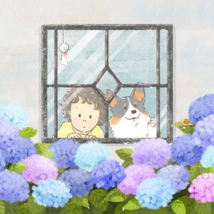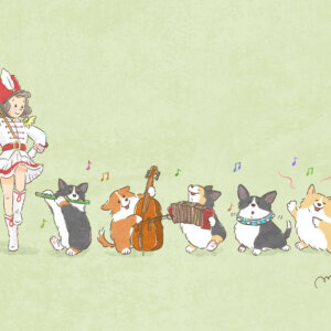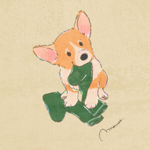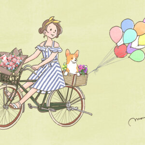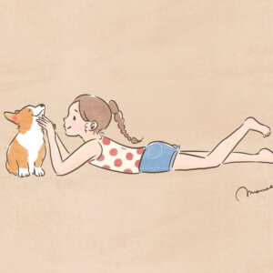 コーギーと子どもシリーズのイラストは、ポストカードサイズ、またはA4サイズ(210mm×297mm)で販売致しております。